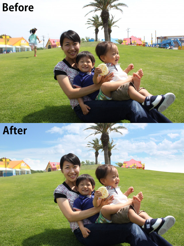青空を合成 投稿日: 2017年4月1日2017年4月6日 投稿者: 管理者 母子だけの写真にするために、背景処理を致しました。 空の合成 人物削除 を行いました。 参考DATA レタッチ費 ¥2,000 制作日数 約2日間 納品方法 webページで使用するためjpgデータをメールで送付