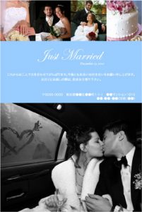 結婚報告ハガキ 投稿日: 2017年4月2日2017年4月3日 投稿者: 管理者 結婚報告ハガキをデザインしました。 新婦様のご要望で背景にティファニーブルーに近いお色にしました。 ※お写真は個人情報保護のためサンプル画像に差し替えてあります。 参考DATA デザイン費 ¥5,000 制作日数 約2日間 印刷会社 お客様のご要望でマイアルバムさんに入稿致しました。 銀塩写真プリントで基本料1980円 1枚当たり29円 ご注文は10枚より発注できます。